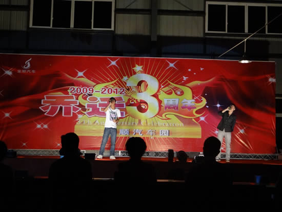 時光荏苒,光陰如梭,金順汽車園喬遷已有三余載,2009年6月18日,我公司由東壩搬遷至下西物流園區(qū),為慶祝喬遷三周年之喜,2012年6月18日晚,我公司舉辦了慶典晚會,在各部門積極熱情的配合下,取得了圓滿的成功。 活動現(xiàn)場由我公司員工和廣元電視臺主持人共同主持,活動內(nèi)容豐富多彩,情景劇、武術、歌曲、舞蹈、朗誦等節(jié)目。 慶典開始,周總首先發(fā)表了熱情洋溢的講話,回顧了金順3年不凡平的歲月,對關心、支持、辛勤工作、真情奉獻的金順員工致以衷心的感謝。