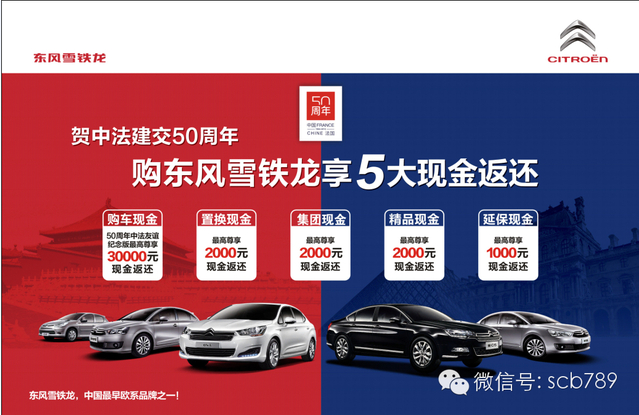 1.購車現金:購50周年中法友誼紀念版最高尊享30000元現金返還