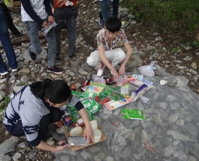 看他們笑的多開心。時(shí)間已經(jīng)接近中午的飯點(diǎn)了,好像大家記起了什么。原來是要準(zhǔn)備中午飯了。我們分工明確,大家又都忙活起來。