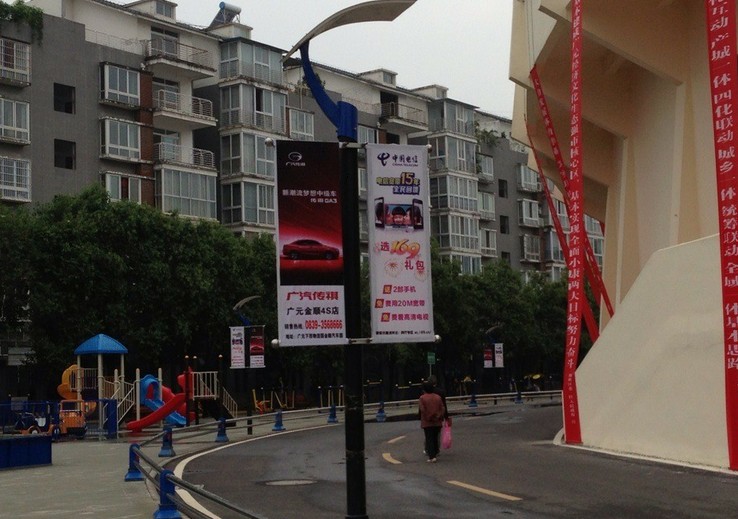 在會場的路燈、涼亭、墻面上隨處可見廣汽傳祺冠名的畫面。