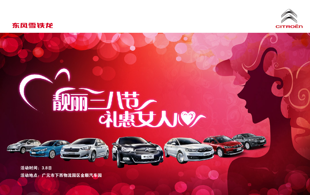 廣元東風(fēng)雪鐵龍3月6號(hào)-3月9號(hào),到店看車(chē)的女性朋友,可以在富有法國(guó)浪漫氣息的法系東風(fēng)雪鐵龍金合順4S店領(lǐng)取一份節(jié)日的慰問(wèn)以及一份精美禮品,同時(shí)店內(nèi)還專門(mén)針對(duì)女性消費(fèi)者量身打造,屆時(shí)將推出數(shù)款適合婦女朋友駕駛的特惠車(chē)型。3月8號(hào)當(dāng)天還將專門(mén)為女性客戶組織美容養(yǎng)生講座。女性朋友可以一邊享受美麗,一邊體驗(yàn)自己的中意座駕。