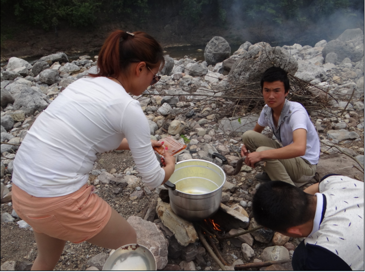 看他們笑的多開心。時(shí)間已經(jīng)接近中午的飯點(diǎn)了,好像大家記起了什么。原來是要準(zhǔn)備中午飯了。我們分工明確,大家又都忙活起來。