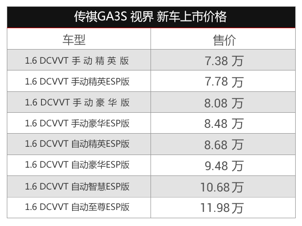 廣汽傳祺新車GA3S·視界已經(jīng)到店,型號為:1.6L自動豪華版ESP,車身顏色為白色,全系車型接受預(yù)訂,感興趣的朋友可以來店/電詳詢。0839-3568666(廣汽傳祺廣元金銘順4S店)網(wǎng)銷專線:18081450728(胡紹華)