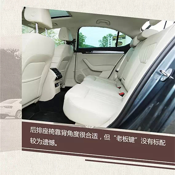 后排的座椅與前排座椅相同,寬大柔軟,靠背的仰角也很合適,加上充足的腿部空間,后排乘坐舒適性甚至比副駕駛還要好。不過作為中級(jí)車,后排“老板鍵”沒有成為標(biāo)配這事還是很讓人費(fèi)解的,個(gè)人覺得這完全不是成本問題。