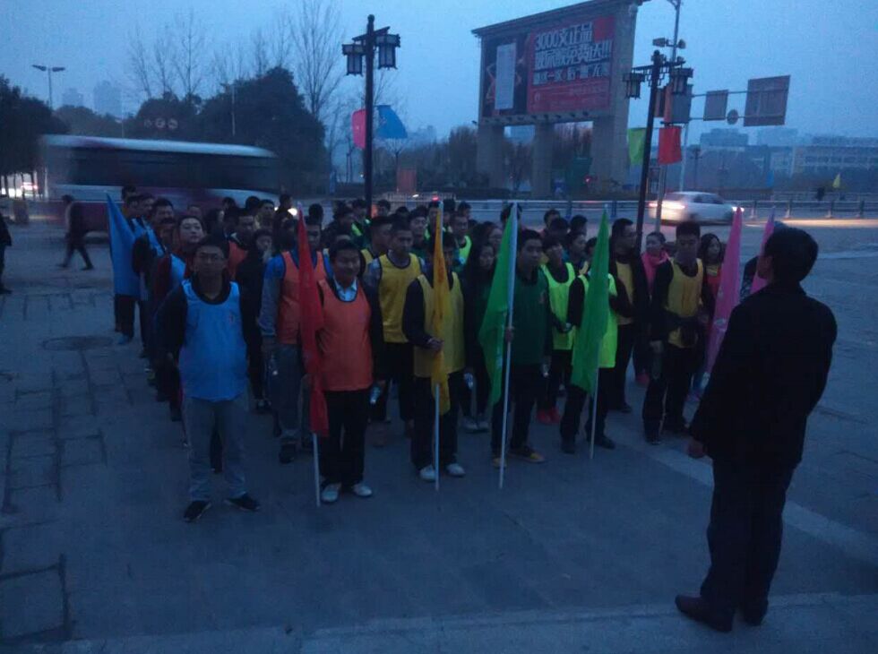 早上7點(diǎn)半,雖然天空還沒有泛白,空氣中還凝結(jié)著寒冷的水汽,但這些都阻擋不住我們對匯聚山頂?shù)母邼q熱情,登山活動準(zhǔn)時進(jìn)行。